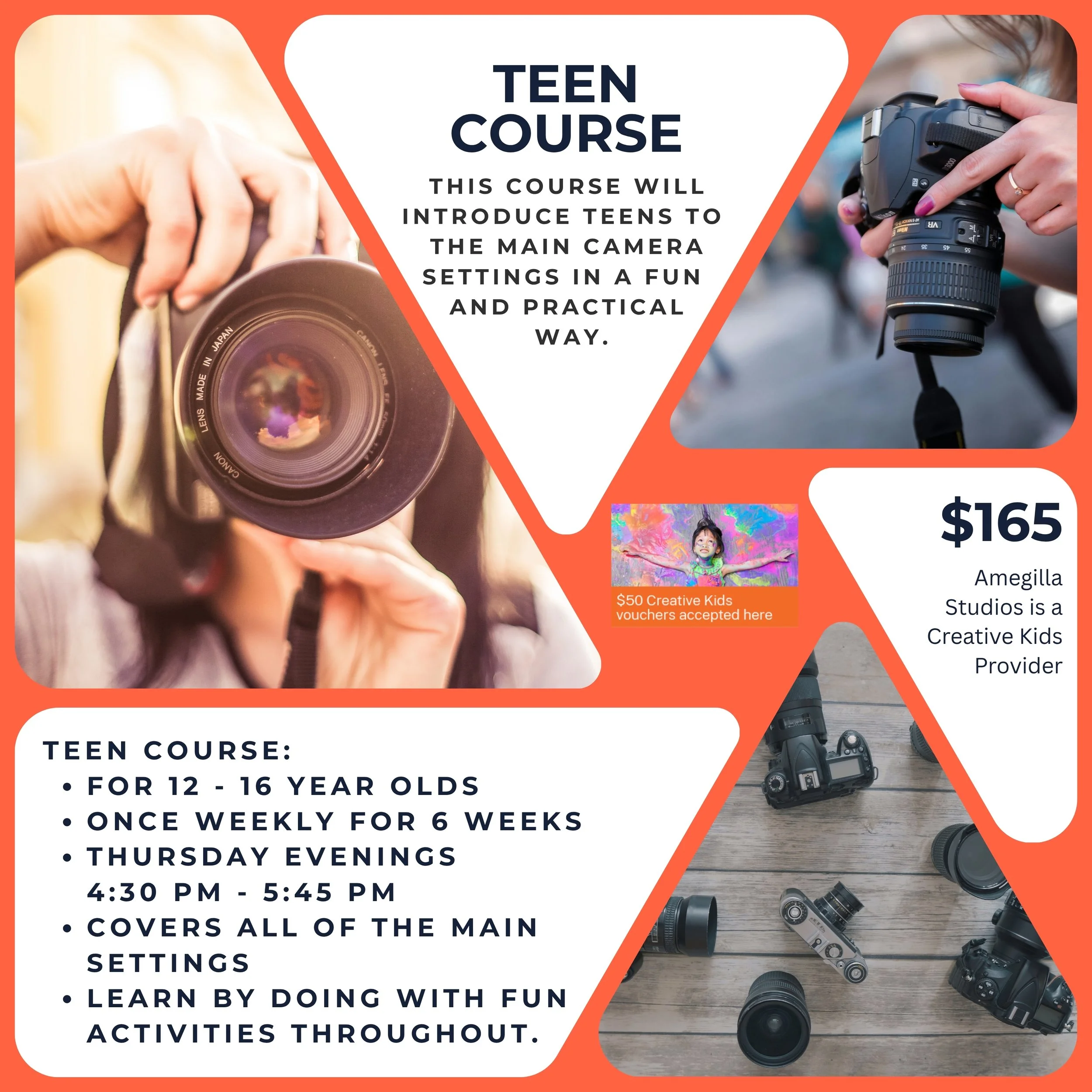 We have courses for teenagers and above. Our courses are conducted on a weekly basis during each school term. These courses are designed for you to learn how to use your cameras to their best ability in a fun and practical way.